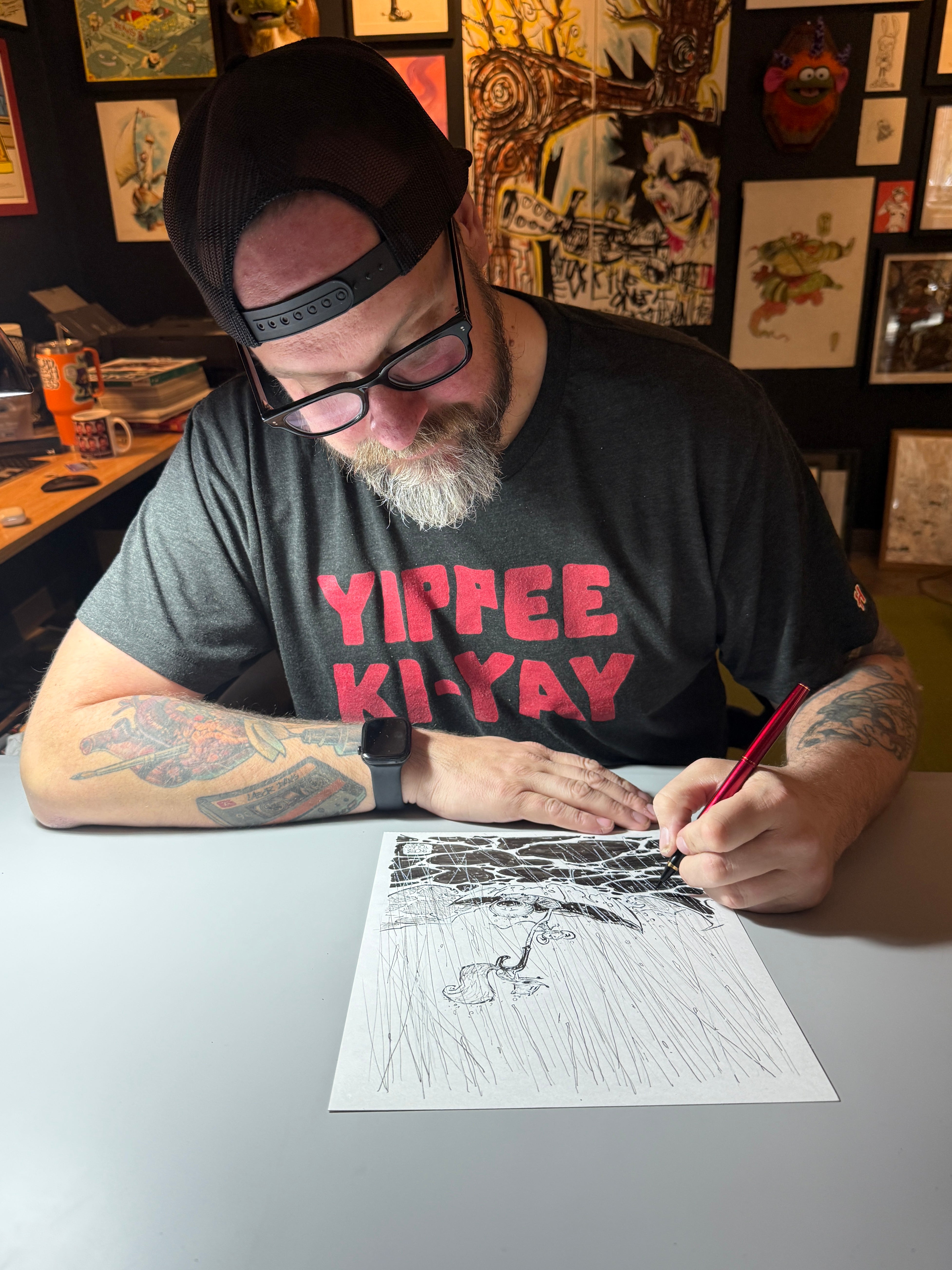 Skottie is sourcing a list of one word prompts for a daily sketch. UMBRELLA is the word for Nov 13, 2025. 9 x 12 ink and on bristol.