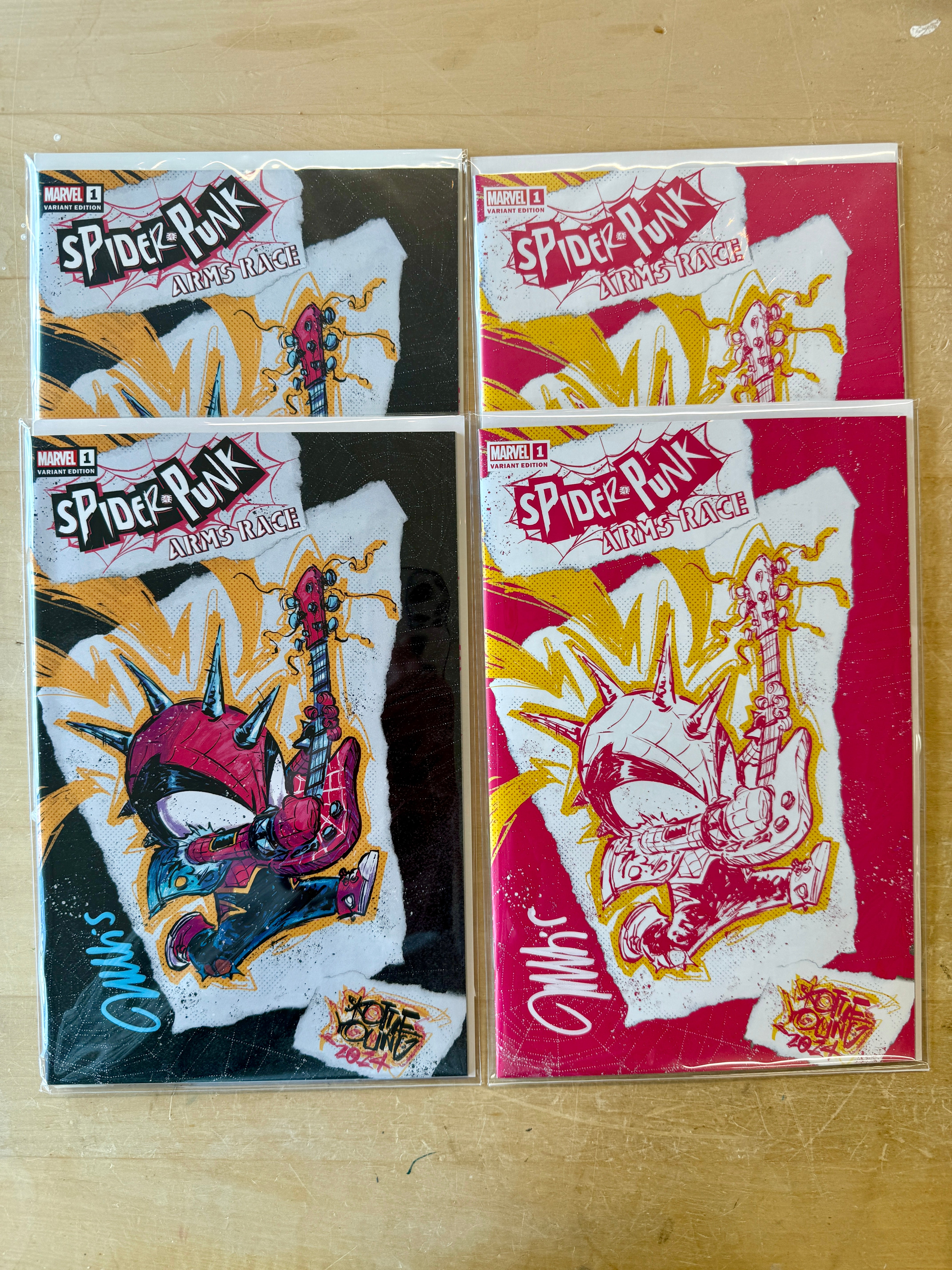 A second chance to grab a set of our exclusive Spider-Punk Arms Race #1. Set includes Cover A (3,000 print run) and Cover B PINK PUNK (1,000 print run)